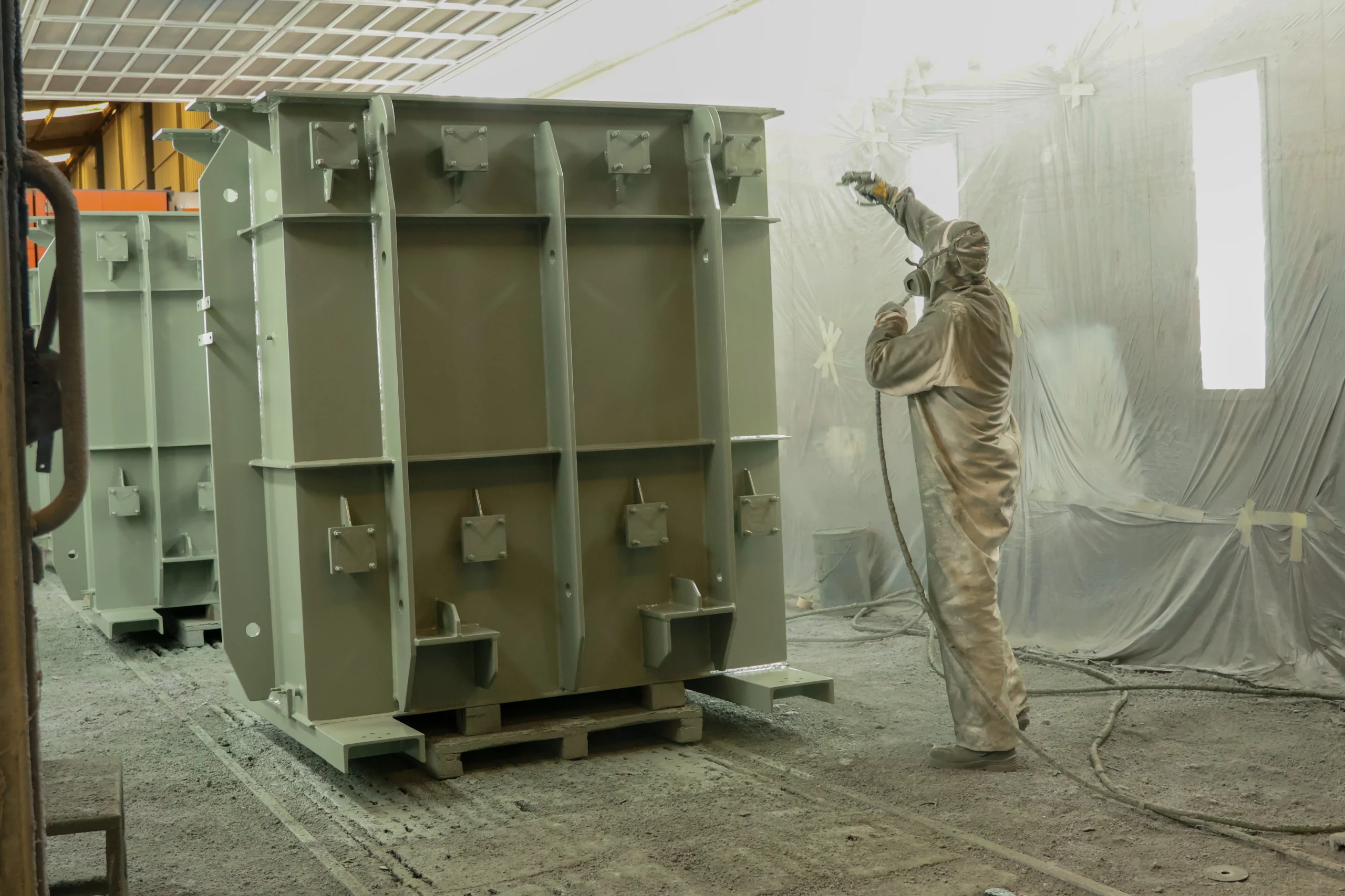 Trafo kazanları ve trafo komponentleri için uyguladığımız yüzey hazırlama ve boya hizmetleri, uzun servis ömrü ve zorlu çevresel koşullara karşı yüksek korozyon dayanımı sağlamak amacıyla uluslararası standartlara uygun şekilde gerçekleştirilmektedir. Boya uygulaması öncesinde yüzeyler müşteri teknik şartnamelerine uygun olarak Sa 2½ seviyesine kadar kumlama işleminden geçirilebilmektedir.